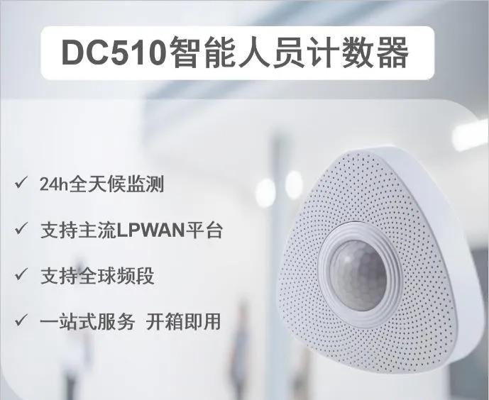 DC510 是一款人员计数器,可以用于各场所进出场所人员计数;当人数超出限定值时,将会立即通过内置的无线模组,将信息传递到云端服务器。