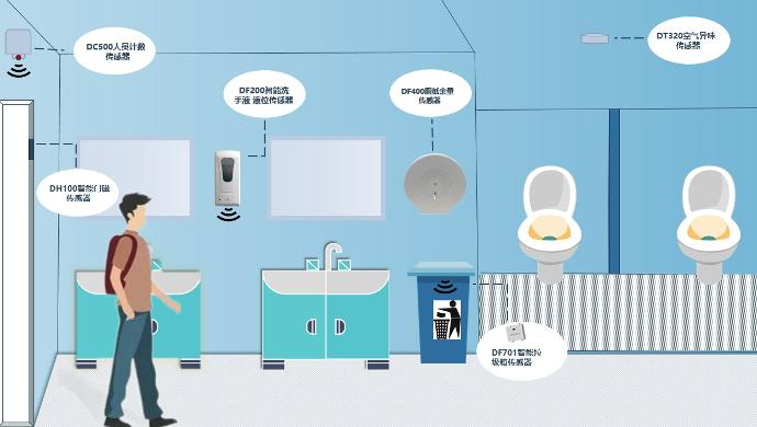 我们的传感器可用于监测皂液机、厕纸的液位,计算人数等,提供实时数据。