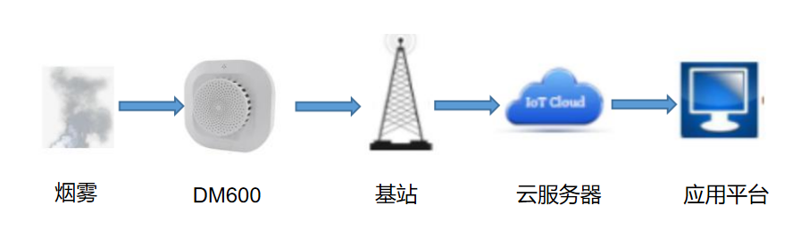 DM600将数据发送到基站,然后到云服务器,最后到应用平台。