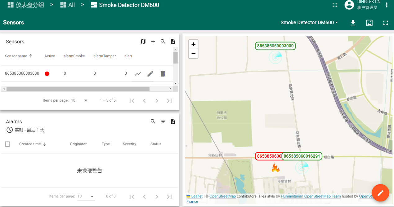 DM600是一种智能烟雾传感器,远程监测烟雾和火灾状态。当传感器检测到烟雾时,立即触发蜂鸣器报警,并将信息发送到云服务器,通过内置的NB-IoT无线模块,服务器将自动向相关人员推送报警信息。